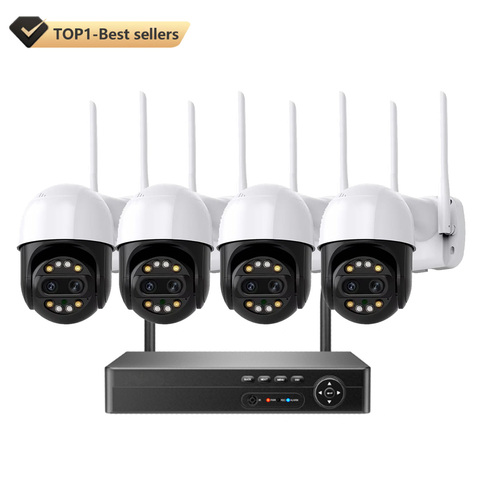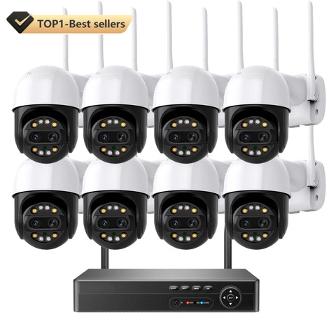 IP ระบบกล้องรักษาความปลอดภัย Wifi 5MP 8CH ไร้สาย PTZ NVR ชุดสองทางเสียงคืนวิสัยทัศน์กล้องวงจรปิดเฝ้าระวังวิดีโอชุดกล้อง